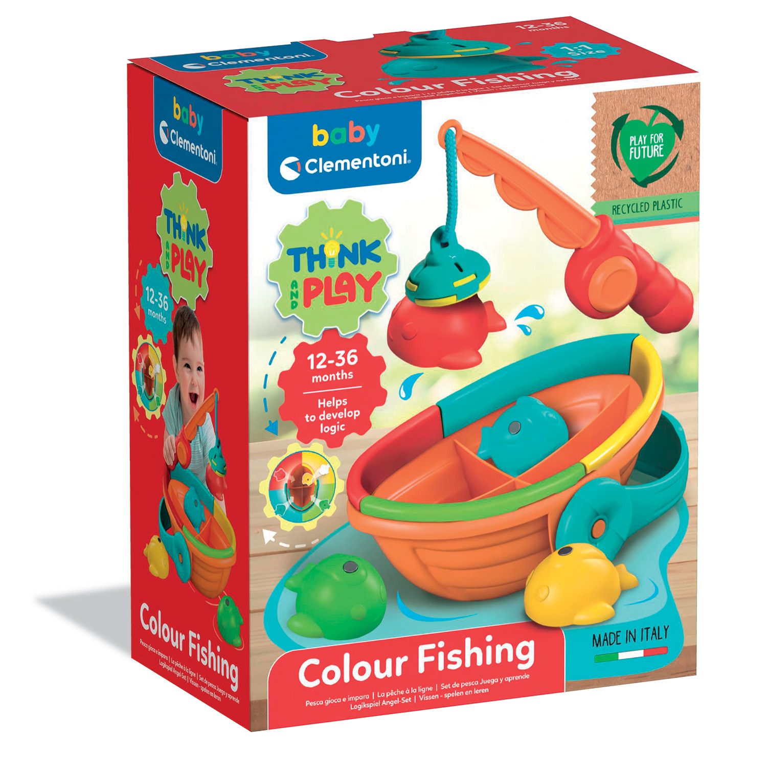 Τέσσερα χαρούμενα ψαράκια που περιμένουν να τα ψαρέψουν και να τα βάλουν στη βάρκα ανάλογα με το χρώμα τους! Ένα κλασικό παιχνίδι σε πιο εξελιγμένη μορφή, φιλικό προς τα παιδιά και διασκεδαστικό. Προωθεί την ανάπτυξη του συντονισμού και βελτιώνει τη λογική σκέψη. Το παιχνίδι διαθέτει εκλεπτυσμένο σχέδιο με απαλά χρώματα και είναι κατασκευασμένο από ανακυκλωμένο πλαστικό, σύμφωνα με την προσέγγιση Play For Future. Ένα καλάμι ψαρέματος με μαγνητική πετονιά που λειτουργεί με εύκολο και διαισθητικό τρόπο. Με 4 ψαράκια να τοποθετούνται στη θήκη του σωστού χρώματος. Το καλάθι για τη συλλογή των ψαριών είναι επίσης μια πλωτή βάρκα για να παίζει το παιδί ενώ κάνει μπάνιο. Τα προϊόντα Play For Future είναι μια απτή ένδειξη της δέσμευση της Clementoni για πιο Υπεύθυνα Προϊόντα. Με μήνυμα σεβασμός στη φύση και σήμα ένα φύλλο σε σχήμα καρδιάς το οποίο είναι ορατό σε όλα τα προϊόντα που κατασκευάζονται από ανακυκλωμένα υλικά. H Clementoni έχει προχωρήσει ήδη στη δημιουργία μίας νέας σειράς παιχνιδιών, φιλικά προς το περιβάλλον. Εκτιμώντας τους πολύτιμους πόρους της γης, προστατεύοντας τη φύση και προτιμώντας υλικά τα οποία ανακυκλώνονται, το παιδί μαθαίνει να αγαπάει τη φύση μέσα από το παιχνίδι! Τα παιχνίδια της σειράς Baby Clementoni βοηθούν τους γονείς να επικοινωνούν και να αλληλεπιδρούν με το μωρό από τις πρώτες ημέρες της ζωής του. Με καινοτόμο σχεδιασμό και χρώματα, μη τοξικά και ανθεκτικά υλικά, καθώς και με ανάγλυφες επιφάνειες και πολλές δραστηριότητες ευνοούν την ανάπτυξη των οπτικών, απτικών και ακουστικών ικανοτήτων, την κινητική δραστηριότητα και τους πρώτους λογικούς συσχετισμούς.