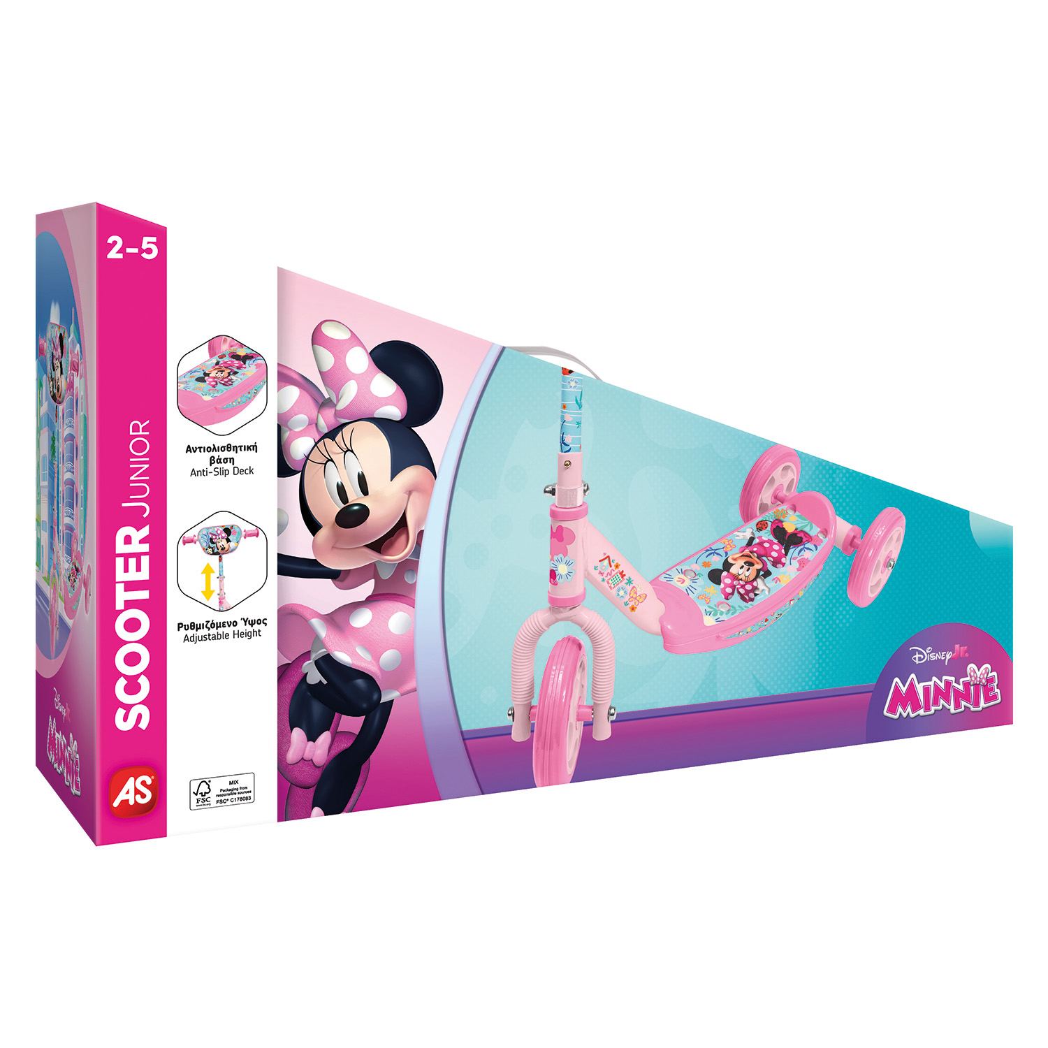 Το AS Scooter Minnie είναι ιδανικό για μικρά παιδιά που θέλουν να απολαμβάνουν τη βόλτα τους με ασφάλεια και στυλ. Με 3 ρόδες για καλύτερη ισορροπία, ρυθμιζόμενο τιμόνι και αντιολισθητική επιφάνεια στη βάση, προσφέρει άνεση και σταθερότητα σε κάθε χρήση. Με το αγαπημένο σχέδιο της Minnie, γίνεται το τέλειο scooter για ηλικίες 2-5 ετών και χαρίζει ατέλειωτες ώρες παιχνιδιού και κίνησης.