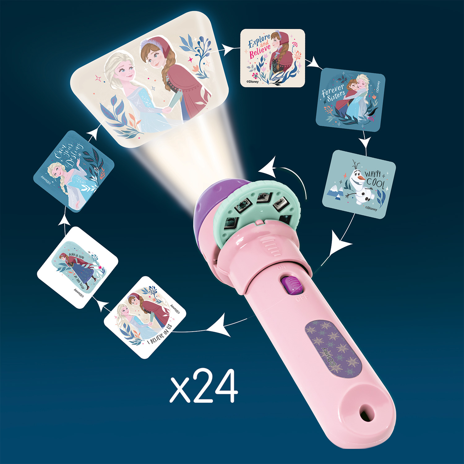 Με το Mini Projector Frozen 2 τα παιδιά μπαίνουν στον μαγικό κόσμο των αγαπημένων τους ηρωίδων! Άνοιξε το πορτάκι, τοποθέτησε το δισκάκι και απόλαυσε εντυπωσιακές εικόνες Frozen 2 να προβάλλονται ξανά και ξανά, μετατρέποντας κάθε στιγμή σε παραμυθένια εμπειρία.