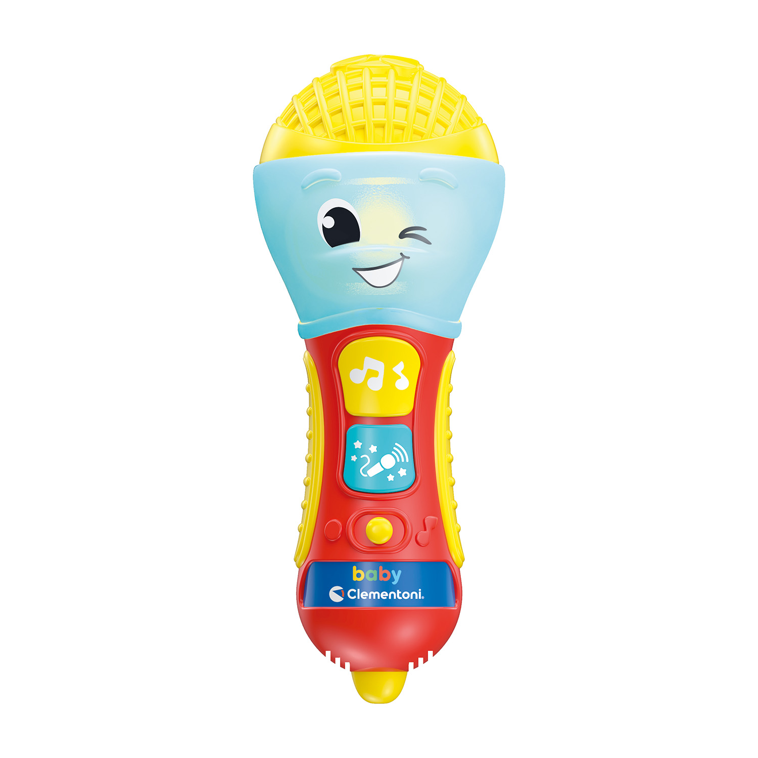 Ένα ωραίο μικρόφωνο με ήχους, σχεδιασμένο να διεγείρει τη δημιουργικότητα και να συνοδεύει το παιδί στις πρώτες του εμπειρίες με τη μουσική και το τραγούδι. Τα παιχνίδια της σειράς Baby Clementoni βοηθούν τους γονείς να επικοινωνούν και να αλληλεπιδρούν με το μωρό από τις πρώτες ημέρες της ζωής του. Με καινοτόμο σχεδιασμό και χρώματα, μη τοξικά και ανθεκτικά υλικά, καθώς και με ανάγλυφες επιφάνειες και πολλές δραστηριότητες ευνοούν την ανάπτυξη των οπτικών, απτικών και ακουστικών ικανοτήτων, την κινητική δραστηριότητα και τους πρώτους λογικούς συσχετισμούς.