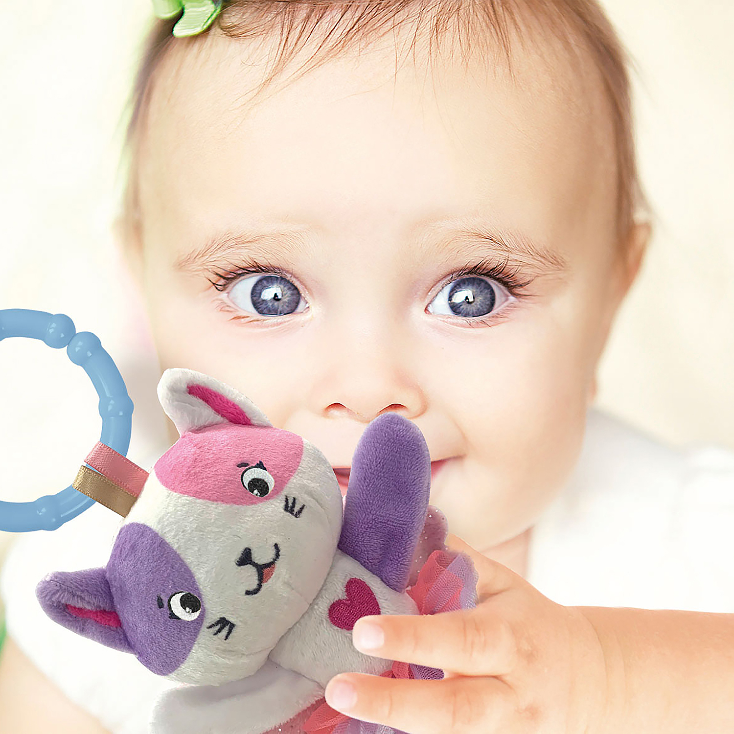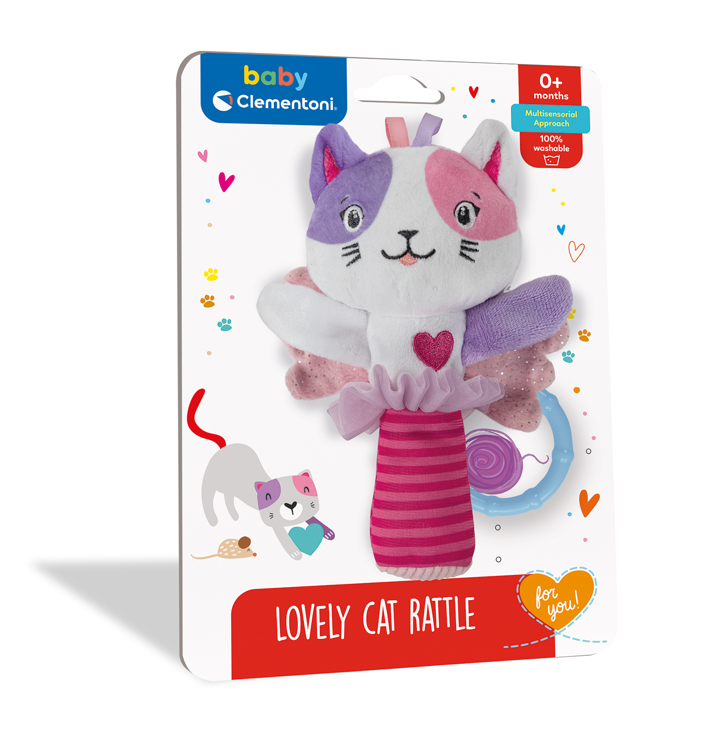 Μια απαλή γατούλα κουδουνίστρα για διασκέδαση με πολυαισθητηριακά στοιχεία. Εύκολη στο κράτημα και το χειρισμό, υποστηρίζει την ανάπτυξη των αισθήσεων χάρη στα στοιχεία που τσαλακώνονται, την κουδουνίστρα και τα διαφορετικά υφάσματα. Με πρακτικό κρίκο για να τοποθετηθεί σε πολλά σημεία, να κρεμαστεί οπουδήποτε και να το έχετε πάντα μαζί σας. Tα προϊόντα της σειράς Baby Clementoni For You, είναι ειδικά σχεδιασμένα για να συμβάλλουν στη σωστή ανάπτυξη του μωρού σας από τους πρώτους μήνες της ζωής του. Τα χρώματα, οι διαφορετικοί ήχοι, η υφή και η μουσική των παιχνιδιών προκαλούν έντονα το ενδιαφέρον του μωρού. Κεντρίζουν το ενδιαφέρον του και το βοηθούν να ανακαλύπτει τον κόσμο, να νιώθει ασφάλεια και οικειότητα στον χώρο του, αλλά και να ηρεμεί. Τα παιχνίδια της σειράς Baby Clementoni For You, αποτελούν εργαλεία που ενθαρρύνουν την αλληλεπίδραση μεταξύ των γονιών και του παιδιού, και παρέχουν τη γνωστική και συναισθηματική ανάπτυξη του μωρού στη χρήση διαφορετικών υλικών και λειτουργιών. Τα παιχνίδια της σειράς Baby Clementoni βοηθούν τους γονείς να επικοινωνούν και να αλληλεπιδρούν με το μωρό από τις πρώτες ημέρες της ζωής του. Με καινοτόμο σχεδιασμό και χρώματα, μη τοξικά και ανθεκτικά υλικά, καθώς και με ανάγλυφες επιφάνειες και πολλές δραστηριότητες ευνοούν την ανάπτυξη των οπτικών, απτικών και ακουστικών ικανοτήτων, την κινητική δραστηριότητα και τους πρώτους λογικούς συσχετισμούς.
