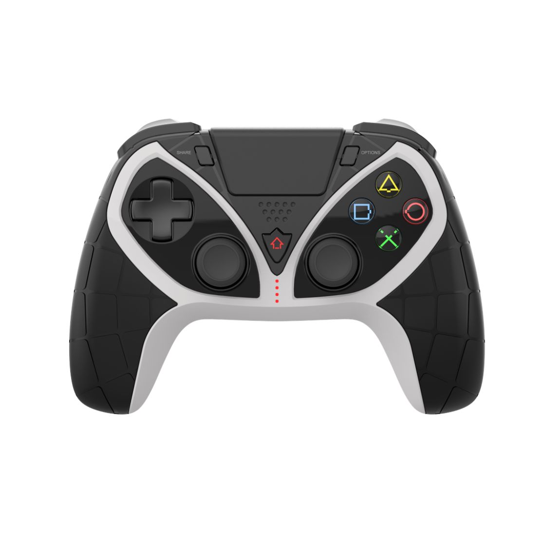 Ενσωματωμένη υποδοχή 3,5 mm για σύνδεση ακουστικών, δύο κινητήρες κραδασμών στις λαβές, εργονομικά σχήματα για μεγάλη διάρκεια παιχνιδιού, καθώς και επιφάνεια αφής στην κορυφή του ελεγκτή.